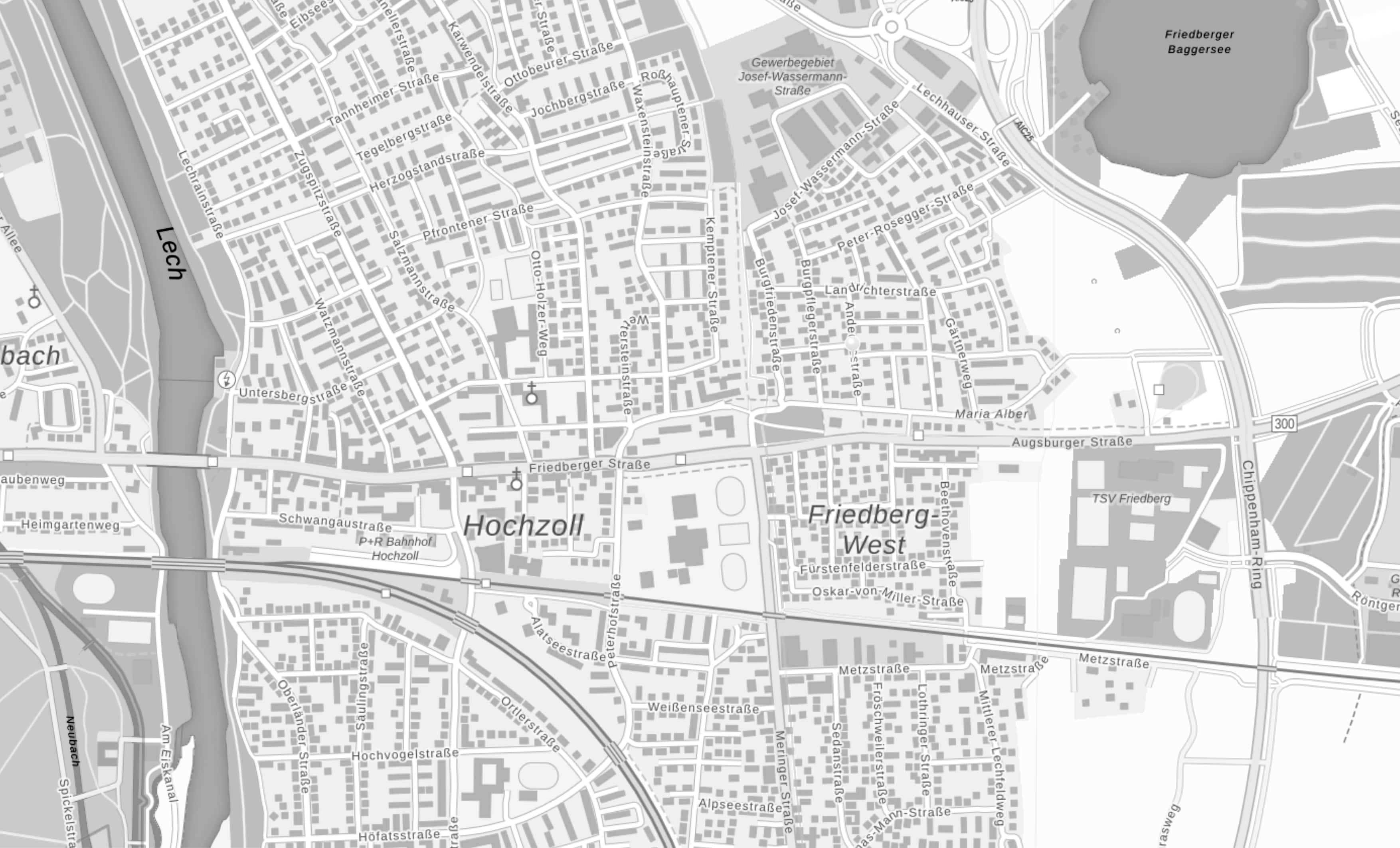 Ruhig aber dennoch sehr zentral gelegen befindet sich das Grundstück in der Andechsstraße, einer Seitenstraße der Maria-Alber-Straße. Der Stadtteil bildet mit seinen vielseitigen Biotopen, wie zum Beispiel dem Friedberger Baggersee, dem Afrasee, dem Kuhsee und dem Lech, einen Ort der Raum für Erholung und Rückzug vom Stadtleben zulässt. Hier lebt man gerne und genießt sein Glas Wein beim Sonnenuntergang auf dem Balkon oder im grünen Garten. Die Straßenbahnlinie 6 ist zu Fuß in 2 min erreichbar. Der Bahnhof Hochzoll ist in 12 min erreichbar. Eine kurze Anfahrt zur Autobahn zeichnet dieses Gebiet besonders aus. Mit dem Auto ist man in wenigen Minuten auf der AIC 25, von dort hat man eine gute Anbindung an die BAB 8. Unzählige Einkaufsmöglichkeiten befinden sich in unmittelbarer Nähe, somit kann der Einkauf nach der Arbeit stressfrei und mit wenig Zeitaufwand in den Tagesablauf eingebaut werden.