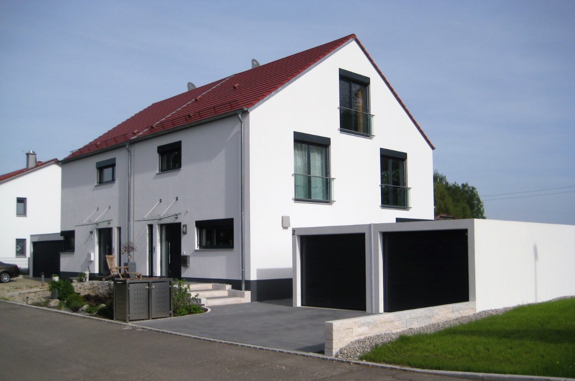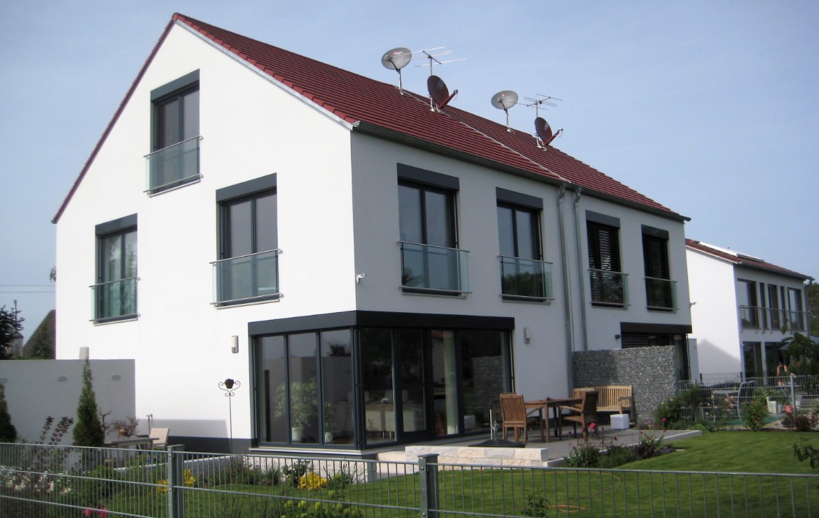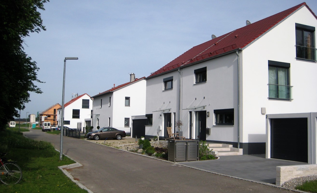 Auf mehreren Grundstücken südlich von St. Afra in Friedberg entstanden insgesamt 10 Einfamilienhäuser bzw. Doppelhaushälften, wovon 6 von uns geplant und im Auftrag der Bauherren gebaut wurden. Sämtliche Häuser in Massivbauweise mit gehobener Austattung, alle mit Fußbodenheizung, Parkett und Fließenböden.